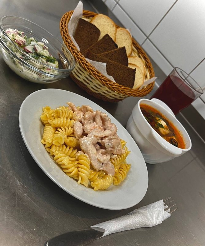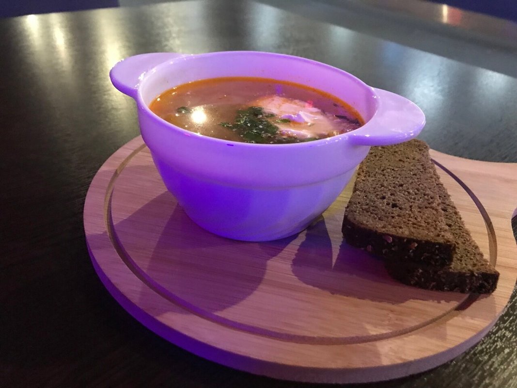 Дорожка, обстановка и приятная атмосфера, свет уютный, столы, стулья и освещение - все отлично. Мы попробовали пиццу, салаты и картошку с наггетсами, все блюда были вкусными. Отдыхали большой компанией, заняли 2 стола, все прошло отлично.